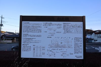 ![]() ホーム上にある蒸気機関車の説明板。 |