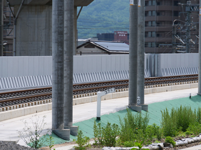 ![]() 左が新設アプローチ線で、右が奥羽本線(在来線)の線路。奥に見えるのが東北新幹線高架。 |