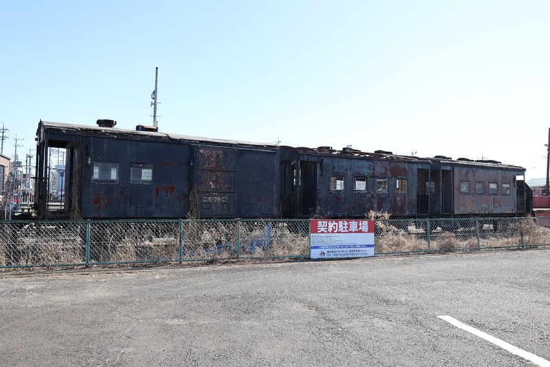 ![]() 左の車両が本形式で、右2両はヨ5000形貨車。 |