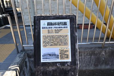 ![]() 駅舎わきにある旧駅舎の説明板。ちなみに現駅舎は2014(平成25)年築。 |