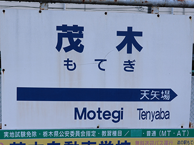 駅名由来 所在地名より。鎌倉幕府の有力御家人八田知家が茂木郡の地頭職に任命され、その子知基は、今の城山に桔梗城を築き、茂木氏と改め、町の地名の起こりとなりました。 (茂木町商工会HPより) その他 真岡線の終点であり、栃木県の最東端の駅でもある。茂木駅からはさらに、改正鉄道敷設法の別表第38号として「茨城県水戸ヨリ阿野沢ヲ経テ東野付近ニ至ル鉄道及阿野沢ヨリ分岐シテ栃木県茂木ニ至ル鉄道」が計画されていた。このうち、茂木駅~長倉宿駅間は国鉄長倉線として1937年に着工し、河井村(現・茂木町)まで路盤は完工したが、太平洋戦争勃発のため工事は中断され開業しなかった。このため、真岡線の線路終端の先には、計画線の用地や路盤が現在も多く残っている。また、水戸寄りでは茨城交通茨城線が開業したが、後に廃止。これらの区間をカバーする国鉄バス(現在のジェイアールバス関東)の「鉄道先行路線」として「水都東線」「水都西線」も運行されたが、1990年代までに廃止されている。 ※参考、引用サイト:Wikipedia |